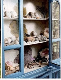 One of Kayce's favorite hobbies is collecting shells while on vacation in the Carribean. I have "shelled" with her, and she is serious about her search! This breakfront in the dining room houses all of her ocean treasures.